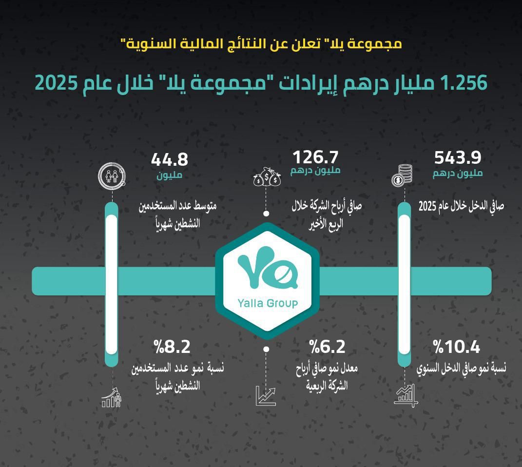 : أعلنت “مجموعة يلا” المحدودة، التي تتخذ من الإمارات العربية المتحدة مقراً لها ومالكة أكبر منصة تواصل اجتماعي وألعاب في الشرق الأوسط وشمال إفريقيا عن نتائجها المالية غير المدققة للعام المالي المنتهي 31 ديسمبر 2025 بالإضافة إلى النتائج المالية للربع الأخير من العام نفسه، مؤكدة استمرارها في تحقيق نمو مستقر وتعزيز مكانتها في قطاع الترفيه الرقمي المتنامي في المنطقة.